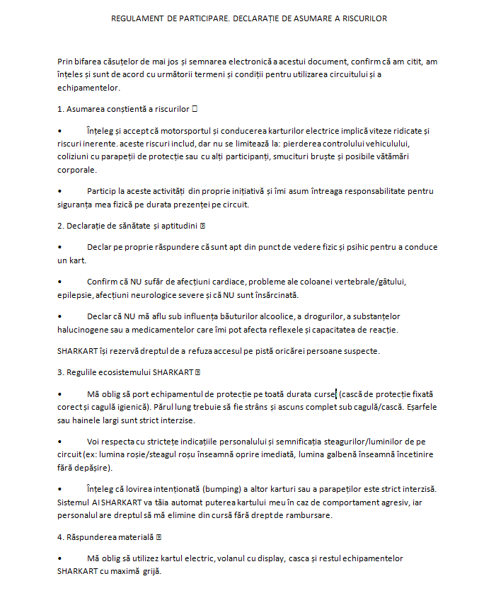 cunoști regulile de siguranță, modul de funcționare al vehiculului și caracteristicile pistei.